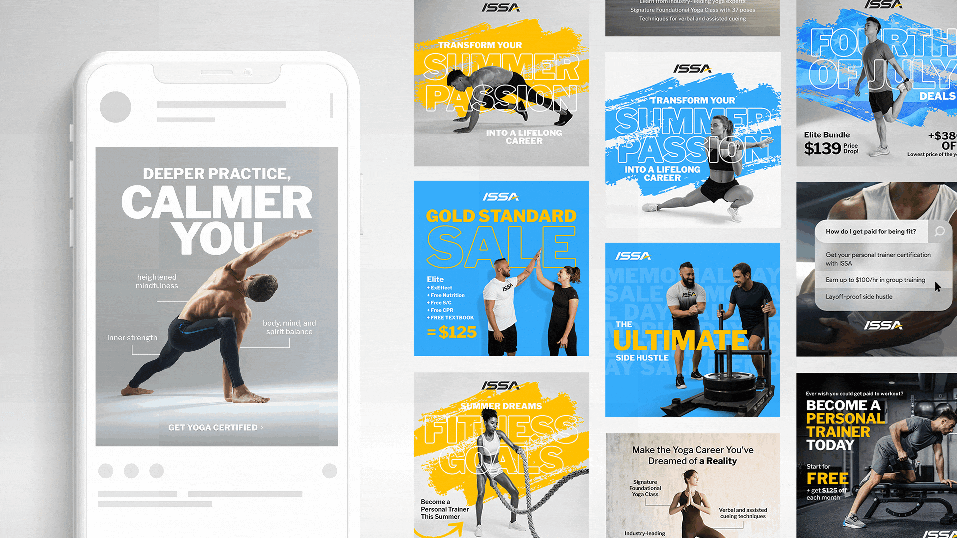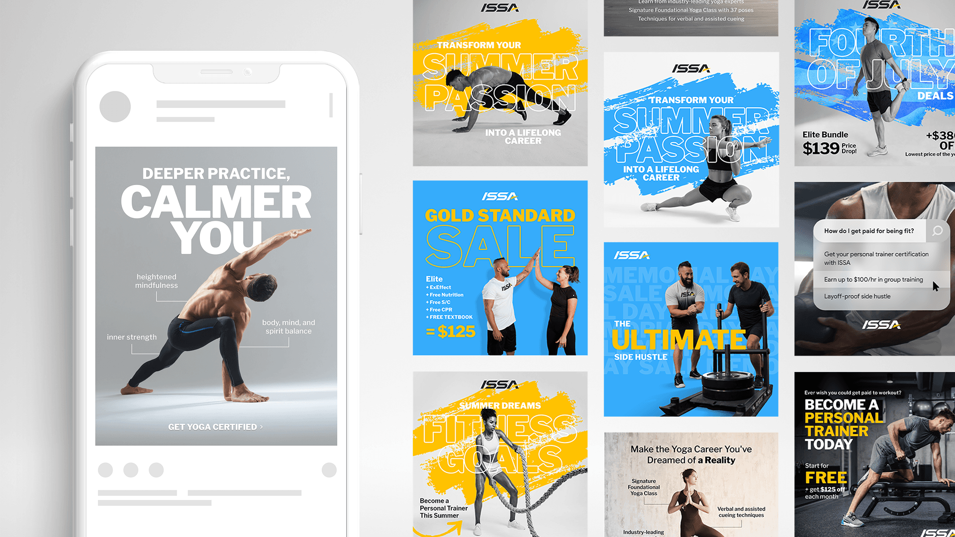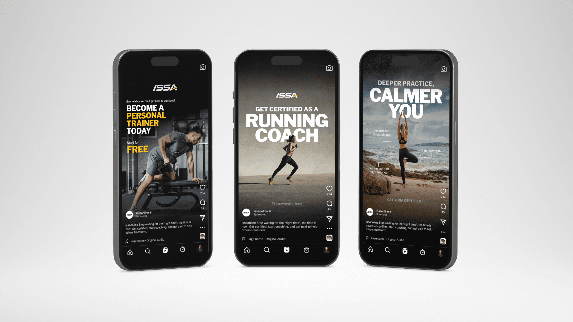 The online fitness education space is crowded, with countless programs vying for attention across social platforms. ISSA needed to cut through the noise with creative that not only aligned with their trusted brand but also stood out in a sea of sameness. The challenge was to produce ad creative that felt fresh, elevated, and scroll-stopping, without losing the credibility and clarity their audience expects.