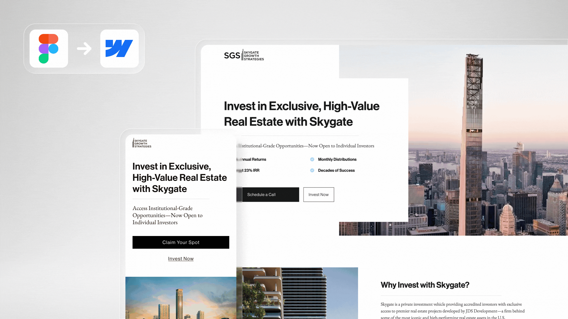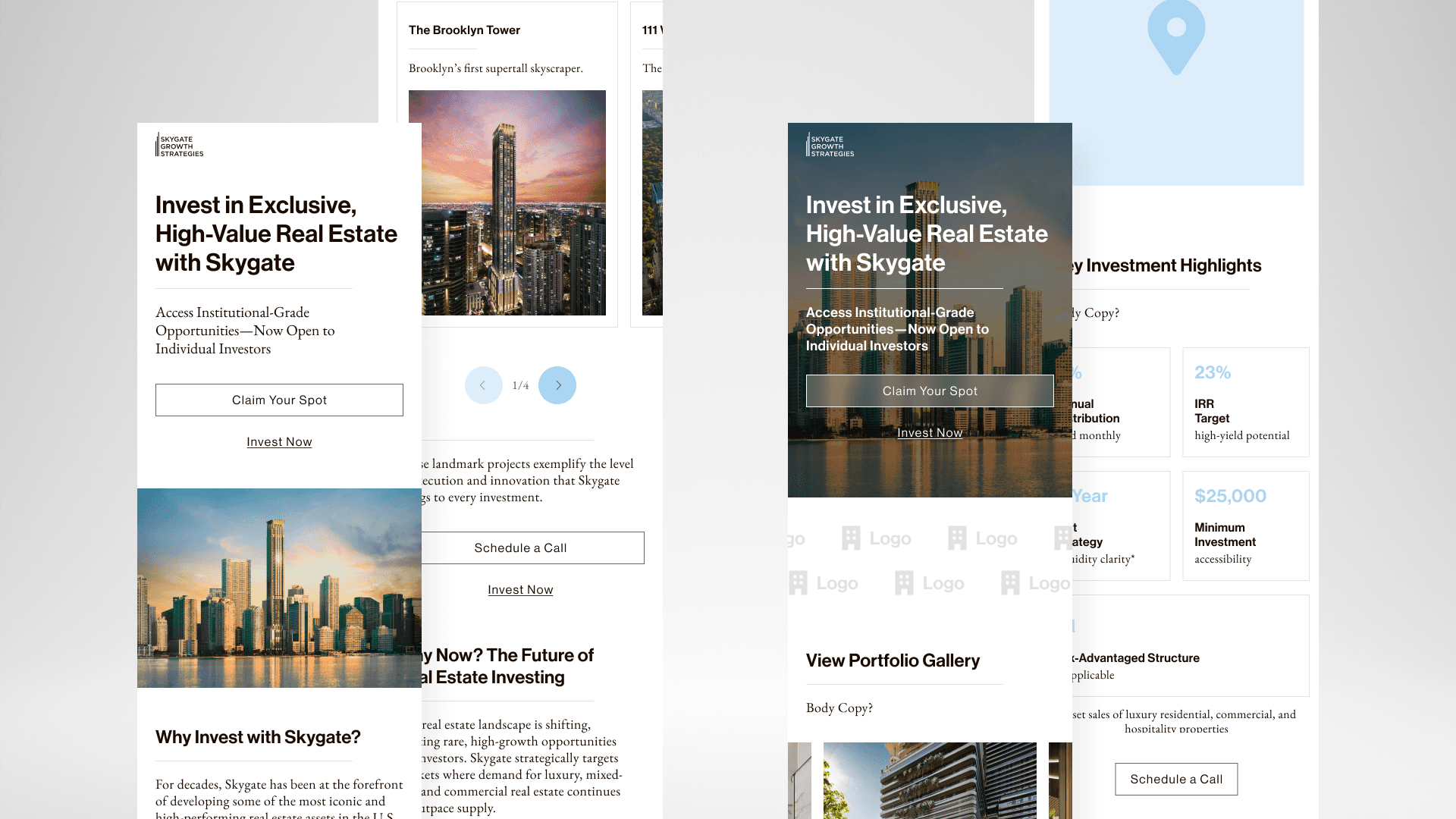 Skygate needed help with their digital brand systems and wanted a landing page to introduce their business model and drive high-net-worth qualified leads. As this was my first time building an intentional design system across Figma and Webflow, the challenge included both visual system setup and intuitive user flow aligned with UX principles to optimize for awareness and conversions.