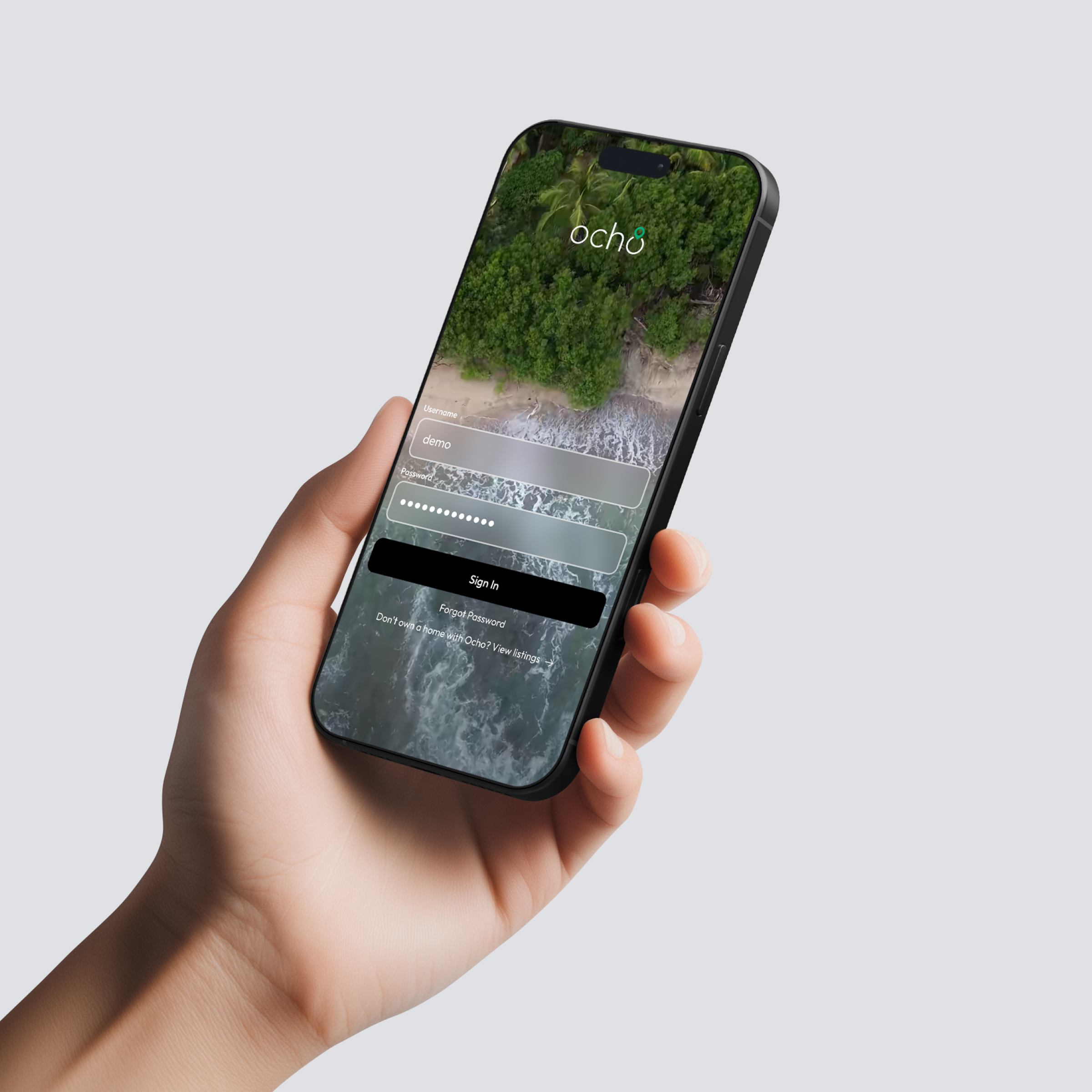 Shared luxury vacation homes — bookings, shared expenses, and a peak-weeks draft. Product: Ocho.